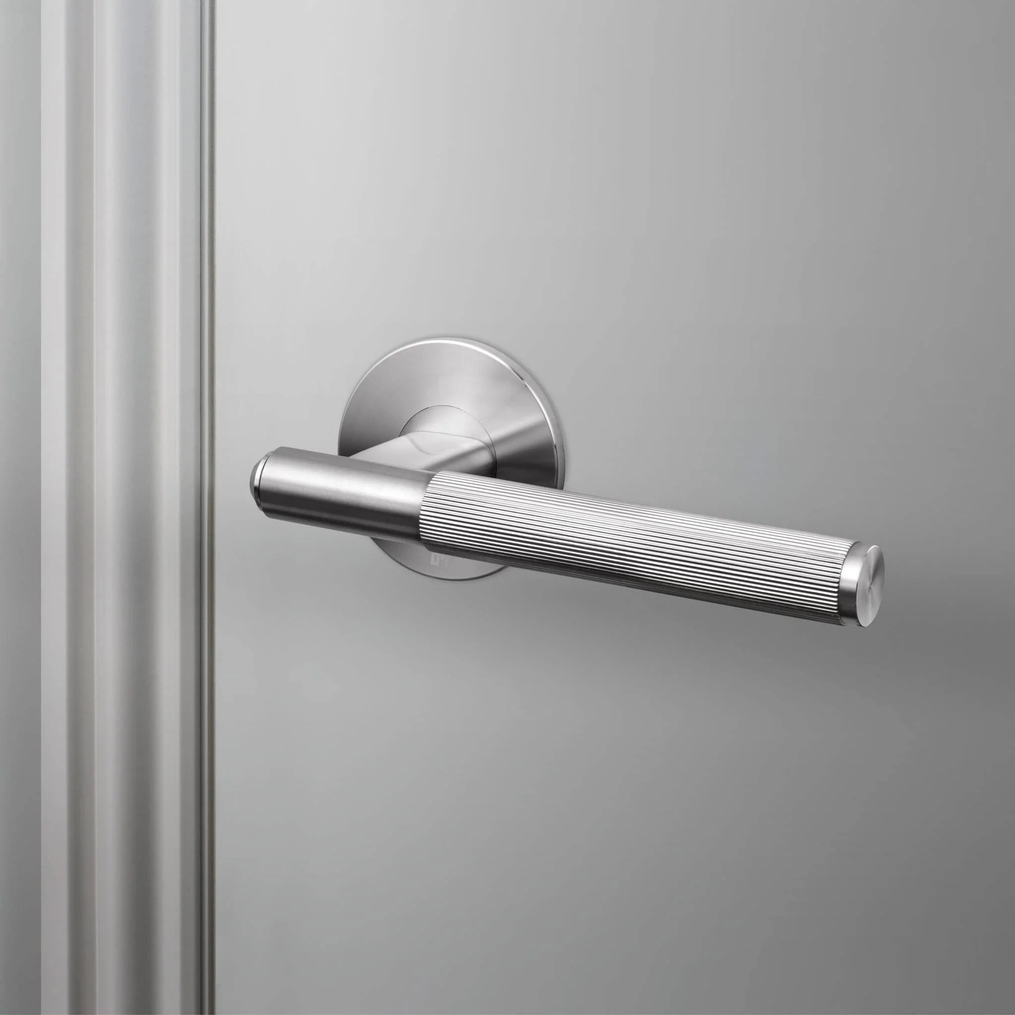A single fixed door handle made from solid metal and featuring our elegant linear-knurl detailing, torx screws and laser etched Buster + Punch insignia. Works great on all internal doors and can be combined with our matching door accessories