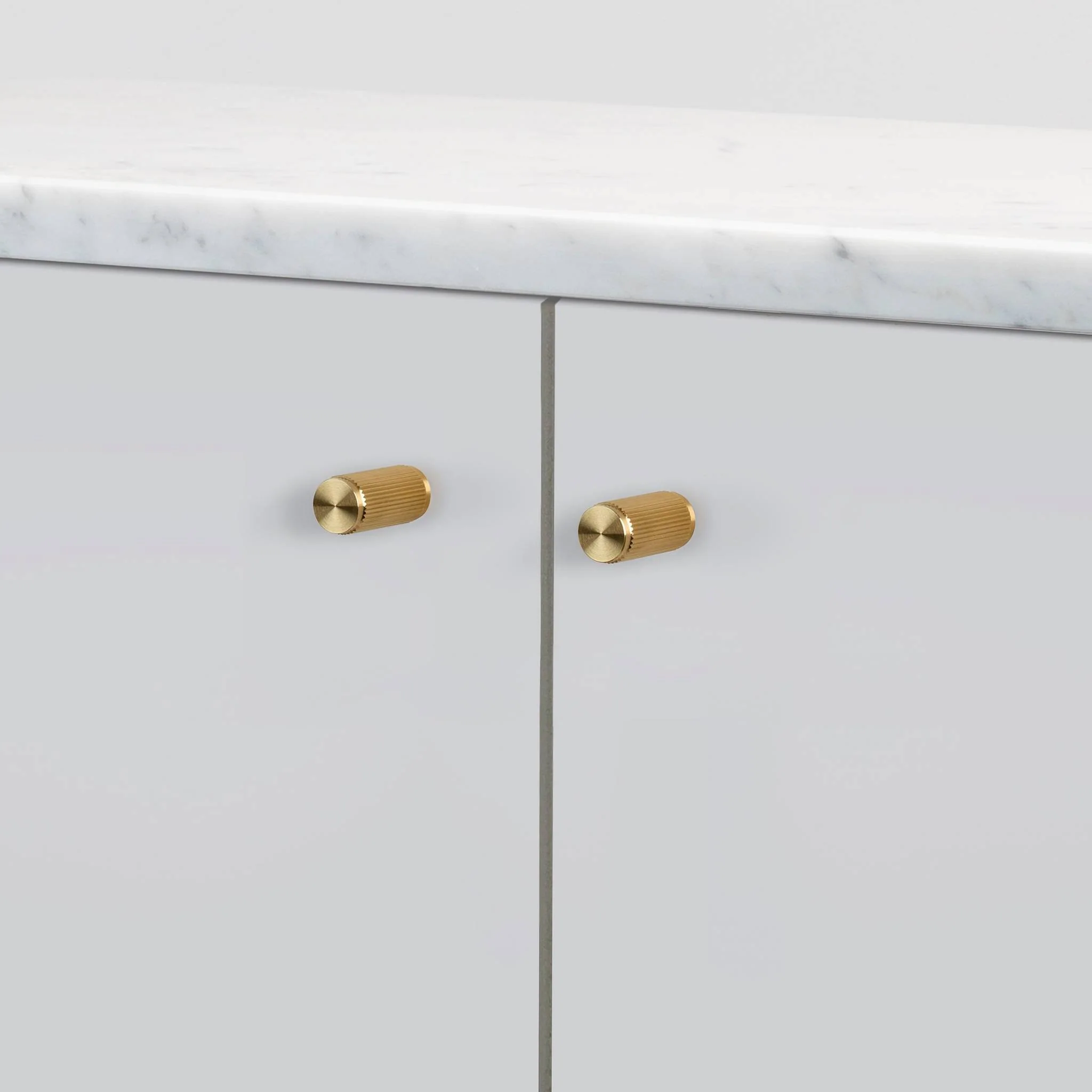 A pair of furniture knobs made from solid metal and featuring our elegant, diamond-cut, linear knurl pattern. Works great on cabinet doors, cupboards, kitchen units and just about anything that can open.